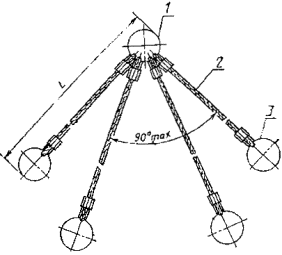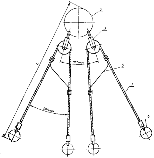 1 - канатная ветвь; 2 - звено; 3 - захват