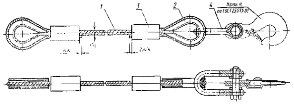 элементов (канатных ветвей, звеньев) и захватов (крюков, карабинов) и
