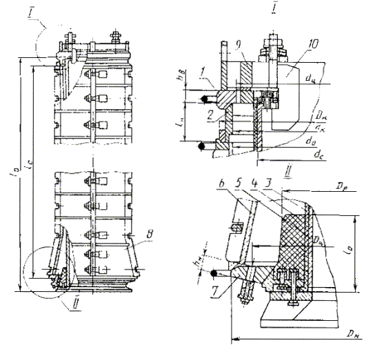 (Поправка. ИУС № 6-1990 г.). Настоящий стандарт распространяется на стальные формы, (далее формы), предназначаемые для изготовления железобетонных виброгидропрессованных напорных труб и поставляемые для нужд народного хозяйства и на экспорт. 1. ТЕХНИЧЕСКИЕ ТРЕБОВАНИЯ1.1. Формы должны изготовляться в соответствии с требованиями настоящего стандарта и технической документации, утвержденной в установленном порядке. Исполнение форм для климатических районов с умеренным климатом У, категории размещения 5 - по ГОСТ 15150-69. Формы должны обеспечивать изготовление труб по ГОСТ 12586.0-83 и ГОСТ 12586.1-83. При изготовлении форм для экспорта, кроме того, должны учитываться требования заказа-наряда внешнеторговой организации, а для стран с тропическим климатом - требования ГОСТ 15151-69. Комплектующие изделия должны быть изготовлены в том же исполнении, что и форма. 1.2. Основные параметры и размеры 1.2.1. Основные параметры и предельные отклонения от проектных размеров форм должны соответствовать указанным в табл. 1 - 3 и на чертеже.