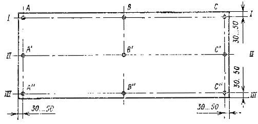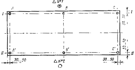 загружения формы грузом определяют превышения h1 и где А1, B1 и C1 - отметки точек по линии I - I, мм;
