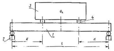 Постановлением Государственного комитета СССР по делам строительства от 23 января 1985 г. № 12 срок введения установлен с 01.01.86 Настоящий стандарт распространяется на стальные формы с горизонтальным расположением формовочного отсека (далее - формы), предназначенные для изготовления железобетонных и бетонных изделий и конструкций (далее - изделий), и устанавливает методы определения их деформативности при эксплуатационных нагрузках. 1. ОБЩИЕ ПОЛОЖЕНИЯ1.1. Испытания форм на деформативность проводят для определения: прогиба формы от вертикальной нагрузки; деформаций формы от продольной нагрузки; прогиба свободного угла поддона при диагональном опирании; прогиба бортов. 1.2. Испытания форм проводят на сборочной плите или площадке, размеры которой должны обеспечивать возможность свободного выполнения всех операций, предусмотренных методикой испытания. 1.3. Опоры, на которые устанавливают формы для испытания, должны быть устойчивы и опираться по всей площади основания. 2. ОПРЕДЕЛЕНИЕ ПРОГИБА ФОРМЫ ОТ ВЕРТИКАЛЬНОЙ НАГРУЗКИ2.1. Метод основан на установлении фактической жесткости формы на изгиб, по которой подсчитывают прогиб от вертикальной нагрузки. 2.2. Аппаратура 2.2.1. Для проведения испытания применяют: нивелир по ГОСТ 10528-76; подставку для нивелира по ГОСТ 16740-79; штатив для нивелира по ГОСТ 11897-78; нивелирную рейку по рекомендуемому приложению 1; измерительную металлическую рулетку по ГОСТ 7502-80. 2.3. Подготовка и проведение испытания 2.3.1. Форму устанавливают на две линейные опоры длиной не менее ширины поддона, расположенные на расстоянии 30 - 50 мм от торцов. Опоры устанавливают по нивелиру. Отклонения от горизонтальной плоскости не должны превышать 2 мм. 2.3.2. На рабочей поверхности поддона формы отмечают шесть точек согласно черт. 1 и с одной станции нивелирования определяют начальные отметки этих точек. Расположение точек нивелирования D № 1 и D № 2 - станции нивелирования Черт. 1 Нивелирование проводят в соответствии с рекомендуемым приложением 1. 2.3.3. На поддон симметрично продольной и поперечной осей укладывают две деревянные подкладки одинакового поперечного сечения и форму загружают грузом согласно черт. 2. Схема загружения формы 1 - форма; 2 - опора; 3 - груз; 4 - подкладка Черт. 2 2.3.4. Повторно определяют отметки трех точек по линии I - I, ближайшей к станции нивелирования № 1. После перестановки нивелира на станцию нивелирования № 2 определяют отметки трех точек по линии II - II. 2.4. Обработка результатов 2.4.1. По отметкам точек до