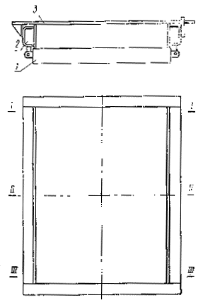 2.5. Допускается определение жесткости формы на изгиб без загружения по рекомендуемому приложению 2. 2.6. Прогиб формы от вертикальной нагрузки определяют по фактической жесткости формы расчетным путем в соответствии с нормативно-технической документацией по расчету и конструированию стальных форм. 3. ОПРЕДЕЛЕНИЕ ДЕФОРМАЦИЙ ФОРМЫ ОТ ПРОДОЛЬНОЙ НАГРУЗКИ3.1. Метод основан на нивелировании точек рабочей поверхности поддона до и после натяжения арматуры и позволяет определить прогиб (выгиб) формы и сближение упоров по оси напряженной арматуры. 3.2. Аппаратура 3.2.1. Для проведения испытания применяют: нивелир по ГОСТ 10528-76; подставку для нивелира по ГОСТ 16740-79; штатив для нивелира по ГОСТ 11897-78; нивелирную рейку по рекомендуемому приложению 1; измерительную металлическую рулетку по ГОСТ 7502-80; средство измерения для определения усилий натяжения в арматуре. 3.3. Подготовка и проведение испытания 3.3.1. Форму устанавливают на сборочную плиту или на две линейные опоры, расположенные по краям или под устройствами для строповки. 3.3.2. Нивелированием по рекомендуемому приложению 1 определяют начальные отметки шести точек, показанных на черт. 1. 3.3.3. Производят натяжение арматуры с расчетным усилием. 3.3.4. Для безопасного выполнения измерений на напряженные стержни следует уложить металлическую сетку и привязать ее проволочными скрутками. 3.3.5. Усилия в натянутых стержнях определяют по ГОСТ 22362-77. 3.3.6. Повторно определяют отметки шести точек. 3.3.7. Если форма с натянутой арматурой после завершения испытания не подается на пост формования, то арматуру следует удалить, предварительно сняв напряжение в ней с помощью домкрата или других устройств. При невозможности выполнения этой операции напряженную арматуру следует перерезать газовой резкой, предварительно нагрев стержни на участке длиной не менее 200 мм. 3.4. Обработка результатов 3.4.1. По начальным отметкам