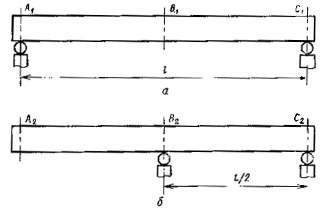 где Qr - вес груза, Н (кгс); l - расстояние между опорами, см; у - средний прогиб, см; s - коэффициент, принимаемый по таблице в зависимости от отношения d/l (см. черт. 2).