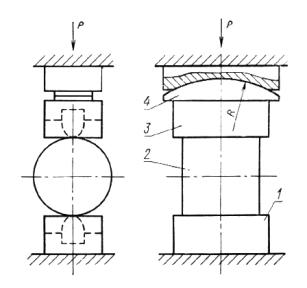 Сущность метода заключается в измерении разрушающей силы, приложенной к образцу через стальные встречно направленные сферические инденторы.