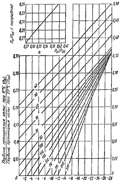 глубины проникания иглы при 25 °С индекс пене-грации определяют интерполяцией или по