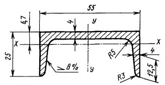 Условные обозначения к табл. 1 и 2: W - момент сопротивления; I - момент инерции. Пример условного обозначения профиля № 5: Профиль № 5 ГОСТ 7511-73 1.3. Смещение стенок относительно полок профилей № 5 и 6 не должно превышать предельных отклонений по ширине полки. 1.1 - 1.3. (Измененная редакция, Изм. № 1). 1.4. Уклон наружной грани каждой полки для профиля № 1 не должен превышать 1,5 %; кривизна стенки по высоте сечения - 0,6 мм; притупление наружных кромок полок - 1,2 мм. 1.5. Размеры и форма сечений гнутых профилей должны соответствовать указанным на черт. 7, 8, 10 и 12. 1.6. Предельные отклонения размеров, площадь поперечного сечения, масса 1 м и справочные значения моментов инерции и сопротивления гнутых профилей № 7, 8 и 10 должны соответствовать указанным в табл. 2 и на черт. 7, 8 и 10. Таблица 2