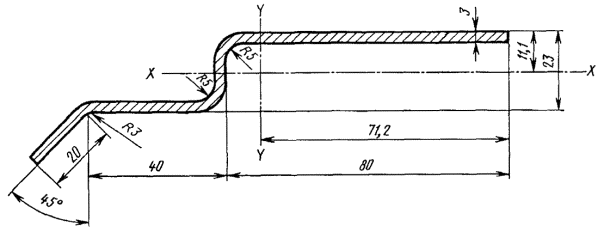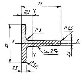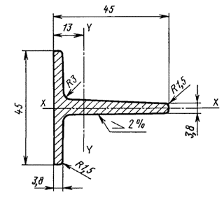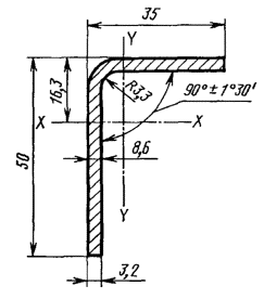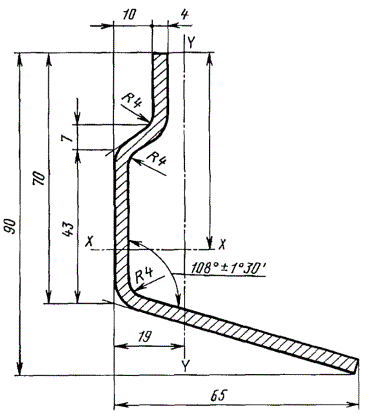 (Измененная редакция, Изм. № 1, 2). 1.8. (Исключен, Изм. № 2). 1.9. Площадь поперечного сечения, масса 1 м и справочные значения моментов инерции и сопротивления профиля вычислены по номинальным размерам. При вычислении массы 1 м профиля плотность стали принята равной 7,85 г/см3. 1.10. Горячекатаные профили изготовляются длиной от 1,8 до 10 м, гнутые - от 4 до 12 м. 1.11. Профили изготовляются: мерной длины; кратной мерной длины; немерной длины. По соглашению сторон допускается изготовление профилей ограниченной длины в пределах немерной. Длина горячекатаных профилей, порезанных на прессах, измеряется без учета смятой части. (Измененная редакция, Изм. № 1, 2). 1.12. При изготовлении профилей немерной длины допускается наличие остатка в количестве не более 10 % массы партии. (Измененная редакция, Изм. № 1). 1.13. Предельные отклонения по длине мерной и кратной мерной длины не должны превышать: +40 мм для профилей длиной до 7 м, +5 мм на каждый метр свыше 7м - для высокой точности порезки; +80 мм - для профилей длиной свыше 7 м - для обычной точности порезки. (Измененная редакция, Изм. № 1, 2). 2. ТЕХНИЧЕСКИЕ ТРЕБОВАНИЯ2.1. Общие технические требования - по ГОСТ 535-88 и ГОСТ 11474-76. 2.2. Профили должны изготовляться из стали марки Ст3кп с химическим составом и нормируемыми показателями для горячекатаных профилей - 2 категории ГОСТ 535-88, для гнутых профилей - 4 категории ГОСТ 16523-97, 2 категории ГОСТ 14637-89. Допускается изготовление профилей из стали других марок. (Измененная редакция, Изм. № 3). 2.3. Скручивание горячекатаных профилей не допускается. 2.4. Скручивание гнутых профилей не должно превышать 1° на 1 м. Общее скручивание гнутых профилей не должно превышать произведения допустимого скручивания 1 м на длину профиля в метрах, но не более 10°. 2.5. Кривизна профилей на 1 м не должна превышать: 2 мм - для горячекатаных; 1 мм - для гнутых. 2.6. Волнистость гнутых профилей по кромкам не должна превышать 2 мм на 1 м. 3. ПРАВИЛА ПРИЕМКИ3.1. Правила приемки - по ГОСТ 535-88 и ГОСТ 11474-76. 3.2. (Исключен, Изм. № 1). 4. МЕТОДЫ ИСПЫТАНИЙ4.1. Контроль размеров поперечного сечения горячекатаных профилей производят на расстоянии 300 мм от торцов, гнутых профилей - на расстоянии 300 мм при поштучном профилировании и 50 мм при непрерывном профилировании. 4.2-4.6. (Исключены, Изм. № 1). 4.7. Схема измерения высоты и ширины профилей представлена на черт. 13. (Измененная редакция, Изм. № 1). 4.8. Методы испытаний - по ГОСТ 535-88 и ГОСТ 11474-76. 4.9. Геометрические размеры и форму профилей проверяют при помощи измерительных инструментов по ГОСТ 162-90, ГОСТ 166-89, ГОСТ 427-75, ГОСТ 5378-88, ГОСТ 6507-90, ГОСТ 7502-98, ТУ 2-034-228-88. Черт. 13 4.10. Размеры профилей, для которых не установлены предельные отклонения, на готовом профиле не контролируют. Они обеспечиваются технологией изготовления. Контроль толщины полок профиля № 1 проводится по калибрам валков. 4.8-4.10. (Введены дополнительно, Изм. № 1). 5. МАРКИРОВКА, УПАКОВКА И ТРАНСПОРТИРОВАНИЕ5.1. Упаковка, маркировка, транспортирование и хранение - по ГОСТ 535-88 и ГОСТ 11474-76. (Измененная редакция, Изм. № 1). 5.2. (Исключен, Изм. № 1). СОДЕРЖАНИЕ