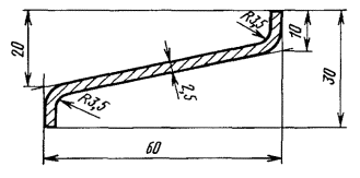 Профиль № 7 Черт. 7 Профиль № 8 Черт. 8 Профиль № 10 Черт. 10* _____________ * Черт. 9. (Исключен, Изм. № 2). 1.5, 1.6. (Измененная редакция, Изм. № 2). 1.7. Предельные отклонения размеров, площадь поперечного сечения и масса 1 м гнутого профиля № 12 должны соответствовать указанным в табл. 3 и на черт. 12. Профиль № 12 Черт. 12* _____________ Черт. 11. (Исключен, Изм. № 2). Таблица 3