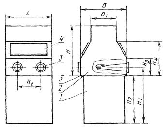 1 - подставка; 2 - корпус; 3 - перчатки; 4 - окно; 5 - столешница. Черт. 4 Защитный бокс 5БП1
