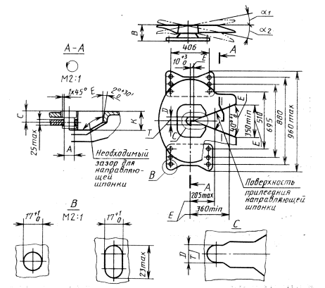 Пример условного обозначения ССУ типа 50 с массой, приходящейся на ССУ, не более 15 т: ССУ 50 - 15 СТ СЭВ 3637 - 882. ОСНОВНЫЕ РАЗМЕРЫОсновные размеры ССУ должны соответствовать указанным на чертеже и в табл. 2.