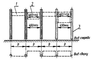 глубины *5 Не рекомендуется для применения в новых разработках. 4. ЗАКРЕПЛЕННЫЕ СТОЕЧНЫЕ КОНСТРУКЦИИЗакрепленная стоечная конструкция - ряд парных вертикальных элементов, расположенных с заданным шагом, прикрепленных к полу нижней частью и потолку и/или к стене верхней частью. Каждая пара вертикальных элементов позволяет установить на нее панели и т.д. в соответствии с ГОСТ 28601.1. Шаг закрепленных стоечных конструкций равен теоретическому расстоянию между центрами стоек. Каждый из вертикальных стоечных элементов может быть изготовлен как одно целое с соседним прилегающим к нему вертикальным стоечным элементом либо быть изготовлен отдельно при условии сохранения величины шага. Настоящий стандарт не устанавливает размеров таких конструкций по высоте и глубине. 5. ШАГИ ЗАКРЕПЛЕННЫХ СТОЕЧНЫХ КОНСТРУКЦИЙШаги закрепленных стоечных конструкций - это расстояния между условными осями, ограничивающими размещение стоек при установке их в ряд. Шаги закрепленных стоечных конструкций указаны на черт. 2.