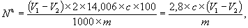 V2 - объем раствора серной кислоты (2.4.6), израсходованной на титрование при проведении контрольного опыта, см3;