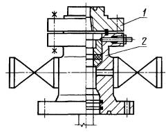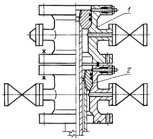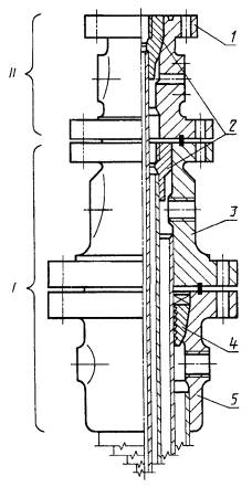- фланец-трубодержатель (74); 2 - уплотнительная крестовина (71)