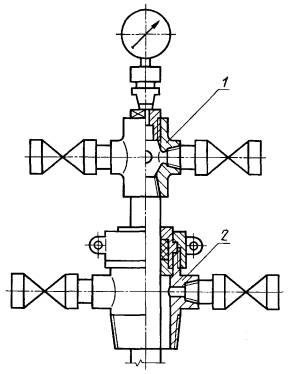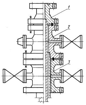 - крестовина-трубодержатель (75); 3 - устьевая крестовина (70)