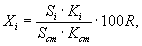 где Si, Sст - площади пиков бензола и внутреннего стандарта; R - отношение массы внутреннего стандарта к массе анализируемой смеси (без стандарта); Ki, Kст - поправочные коэффициенты чувствительности бензола и внутреннего стандарта. 5.4. Объемную долю бензола (X') в процентах вычисляют по формуле