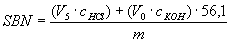 где V4 - объем раствора гидроокиси калия, израсходованный на титрование контрольного раствора (п. 10.2), г. 11.1.3. Щелочное число сильных оснований (SBN), выраженное в миллиграммах КОН на грамм, вычисляют по формуле