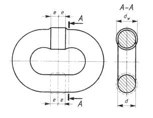 l - наружная длина звена (не менее 4,75 dn, не более 5 dn); W - наружная ширина звена (не более 3,5 dn, кроме места сварки); W1 - внутренняя ширина звена (не менее 1,25 dn, кроме места сварки) Рисунок 2 - Размеры звена 5. Технические требования5.1. Цепи следует изготавливать по рабочим чертежам в соответствии с требованиями настоящего стандарта. 5.2. Материал и технология изготовления 5.2.1. Качество материала 5.2.1.1. Сталь для изготовления цепей должна быть выплавлена в мартеновских печах, электропечах либо в конверторах с кислородной поддувкой. 5.2.1.2. При поставке изготовителю цепей сталь должна соответствовать требованиям, приведенным ниже и определяемым сертификатом поставщика или при контрольных анализах прутков, проволоки или готовых звеньев. 5.2.1.3. Сталь должна быть полностью успокоенной, обладать хорошей свариваемостью и содержать легирующие элементы в достаточном количестве, чтобы гарантировать установленные настоящим стандартом механические свойства цепи после соответствующей термической обработки. Применяемые для изготовления цепей легированные стали должны содержать никель и хотя бы еще один из следующих легирующих элементов: хром или молибден. 5.2.1.4. Содержание серы и фосфора в стали должно быть, %, не более: