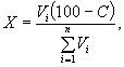 где Vi - относительный объем частиц глинозема определенной фракции, мкм3; С - массовая доля остатка на сите № 0063, %;