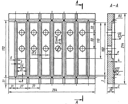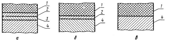 где F - максимальная (метод А) или средняя (методы Б и В) сила отслаивания каждого образца, Н (кгс); b - ширина образца, мм (см). 4.2. Среднюю силу отслаивания каждого образца вычисляют как среднее арифметическое не менее 10 показателей, полученных по п. 3.4.2. При обработке результатов испытаний, полученных по п. 3.4.3, среднюю силу отслаивания каждого образца вычисляют как среднее арифметическое из всех записанных показаний, включая силу, при которой происходит обрыв. При обработке результатов испытаний, полученных по п. 3.4.4, за среднюю силу отслаивания образца принимают силу, при которой происходит обрыв; при обработке результатов, полученных по п. 3.4.5, - максимальную силу. По методам Б и В допускается подсчет среднего арифметического показателей не менее трех образцов. При этом для каждого из трех образцов показатель должен быть не менее нормы, указанной в НТД на клей, резину или изделие. 4.4. Характер разрушения образца указывают следующими обозначениями: Р - разрушение по массиву резины; РК - разрушение на границе резина - клей; К - разрушение произошло по клею; КП - разрушение на границе клей - праймер; М - разрушение на границе праймер - металл, клей - металл или резина - металл (при бесклеевом креплении). Разрезы образцов в месте крепления резины к металлу показаны на черт. 4. а - при применении двух клеев; б - при применении одного клея; в - при бесклеевом креплении 1 - резина; 2 - клей; 3 - праймер; 4 - металл Черт. 4* * Черт. 3. (Исключен, Изм. № 1). При наличии нескольких видов разрушения следует отметить характер разрушения образца. Характер разрушения образца определяют визуально и ориентировочно выражают в процентах, например: 20 % Р, 30 % РК, 40 % КП; 10 % М или 20 % Р, 30 % РК, 40 % К, 10 % М. 4.1-4.4. (Измененная редакция, Изм. № 1). 4.5. Результаты испытания записывают в протокол, содержащий данные: обозначение резины, клея; марку металла; метод крепления резины к металлу; режим вулканизации (при креплении невулканизованных резин к металлам в процессе вулканизации); дату изготовления образцов; дату проведения испытания; температуру кондиционирования и испытания; результат испытания каждого образца по пп. 4.1, 4.3; описание характера разрушения каждого образца и выражение его в процентах по п. 4.4 (при необходимости). Примечание. При определении характера разрушения образца обнаруженные дефекты (недопрессовки, посторонние включения и т.п.) также заносят в протокол испытания. (Измененная редакция, Изм. № 2). ПРИЛОЖЕНИЕ 1Рекомендуемое ПРИСПОСОБЛЕНИЕ ДЛЯ ЗАКРЕПЛЕНИЯ ИСПЫТУЕМОГО ОБРАЗЦА ПО МЕТОДУ А