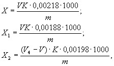 где m - масса бромистого или хлористого калия, г; М1 -молекулярная масса азотнокислого серебря, г; М2 -молекулярная масса бромистого или хлористого калия г; V0 - объем 0,02 н. раствора азотнокислого серебра, израсходованный на титрование, мл. Поправочный коэффициент (К) вычисляют по формуле