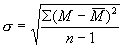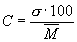 где Σ М - сумма результатов испытания; n - общее число испытаний. При использовании среднего арифметического в качестве промежуточного результата его значение должно иметь на одну цифру больше, чем у результатов испытаний. Если среднее арифметическое является окончательным результатом, его значение должно иметь столько цифр, сколько их у результатов испытаний. 4.6.3 Для оценки неравномерности показателя определяют коэффициент вариации. Коэффициент вариации (С) в процентах вычисляют по формуле