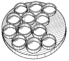Черт. 3 (Измененная редакция, Изм. № 1). II. ПОДГОТОВКА К ИСПЫТАНИЮ2. Чистый диск предварительно пришлифовывают к нагревательной пластине для равномерного нагрева всей поверхности. Противоположную сторону диска последовательно обрабатывают шлифовальной шкуркой до шероховатости поверхности Ra от 0,63 до 0,32 мкм по ГОСТ 2789-73. Диск устанавливают на нагревательную пластину аппарата, проверяют горизонтальность установки аппарата по уровню и в углубление диска помещают металлический сплав. Чашечки промывают бензином. Если они загрязнены лаковыми отложениями, то их прокаливают на электроплитке до полного удаления лаковых отложений. (Измененная редакция, Изм. № 1). III. ПРОВЕДЕНИЕ ИСПЫТАНИЯ3. Во взвешенные с погрешностью не более 0,0002 г чашечки берут с той же погрешностью пробы массой (0,2 ± 0,002) г испытуемого нефтепродукта. 4. Чашечки с пробами берут в количестве, обеспечивающем определение установленных в технических условиях точек фракционного состава. 3, 4. (Измененная редакция, Изм. № 2). 5. Включают нагрев аппарата Папок и после расплавления металлического сплава в углубление диска опускают термометр так, чтобы ртутный резервуар термометра полностью находился в сплаве. Когда температура диска будет превышать на 2 °С температуру начала испытания, открывают дверцу и в течение 1 мин устанавливают на диск чашечки с испытуемым продуктом, закрывают дверцу аппарата и продолжают повышать температуру на 10 °С через каждые 3 мин. Температура начала испытания должна быть не менее чем на 10 °С ниже температуры, при которой снимается первая чашечка. (Измененная редакция, Изм. № 1). 6. При повышении температуры на каждые 20 °С с диска снимают очередную, по порядку нумерации, чашечку и ставят на керамиковую плитку, установленную в эксикаторе. 7. (Исключен, Изм. № 2). 8. После охлаждения до комнатной температуры чашечки с пробами взвешивают с погрешностью не более 0,0002 г. (Измененная редакция, Изм. № 2). IV. ОБРАБОТКА РЕЗУЛЬТАТОВ9. Испаряемость испытуемого нефтепродукта при температуре T в процентах (Хт) вычисляют по формуле
