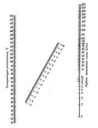 1. При промежуточных значениях глубины проникания иглы при 25°С, не указанных в таблице, индекс пенетрации определяют интерполяцией или по номограмме.