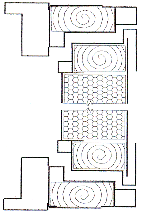 Рисунок 5 - Пример конструкции двупольного дверного блока с облицовкой из древесины или древесно-плитных материалов (горизонтальное сечение)