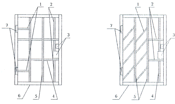 Рисунок 7 - Примеры конструкции дверного полотна, сваренного из стальных профилей, с вертикальными и горизонтальными усиливающими профилями и установленными замками (а) и дверной коробкой (б) Коробки (рамы) изготавливают из гнутого профиля толщиной не менее 1,5 мм или из прямоугольного профиля с сечением не менее 40×50 мм. Коробки (рамы) и дверные полотна изготавливают не ниже чем по 15 квалитету точности по ГОСТ 25347. 5.1.4 В конструкциях дверных полотен рекомендуется использовать вертикальные и горизонтальные усиливающие профили (средники). Рекомендуется применять не менее двух вертикальных и горизонтальных усиливающих профилей. Допускается располагать усиливающие профили под углом между вертикальными (наклонные профили). Горизонтальные усиливающие профили рекомендуется располагать в петлевой зоне или в зоне противосъемных устройств. Примеры расположения усиливающих профилей в дверном полотне приведены на рисунке 8.