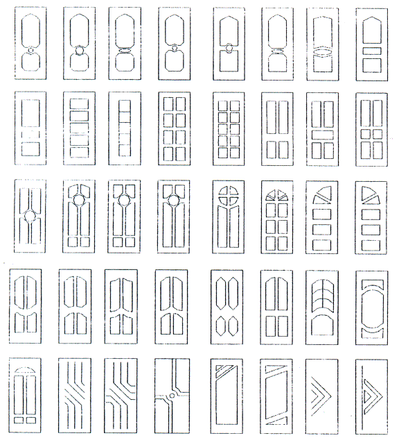 Рисунок Б.1 - Варианты отделки дверных полотен фрезерованными МДФ или древесными плитами и массивом древесины