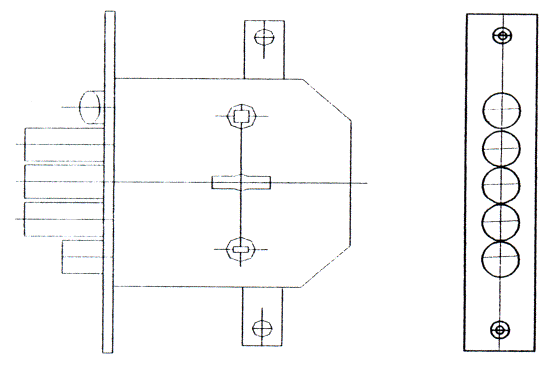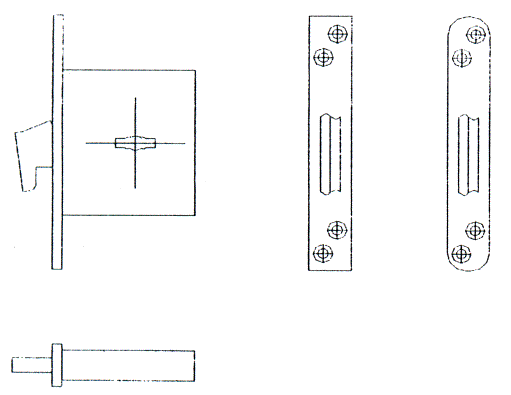 Рисунок Б.4 - Пример замка с крюкообразным засовом (обязательное) Требования, предъявляемые к защитным дверным блокам