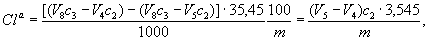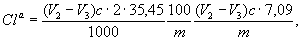 где V2 - объем раствора азотнокислой ртути (II), израсходованный на титрование при проведении испытания по 3.5.2, см3; V3 - объем раствора азотнокислой ртути (II), израсходованный на титрование в контрольном опыте по 3.6, см3; с - концентрация раствора азотнокислой ртути (II), моль/дм3; m - масса навески топлива, г. 3.7.2 Метод Фольгарда Массовую долю хлора в аналитической пробе Сlа, %, вычисляют по формуле:
