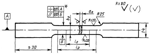 где m - масса образца, г; r - плотность, г/см3; L - длина образца, мм. (Измененная редакция, Изм. № 3). 4.6. Измерение образцов после испытания и вычисление результатов производят по ГОСТ 1497. 4.6.1. Определение относительного сужения проводят только на цилиндрических образцах. 4.6.2. При определении относительного удлинения продольных образцов в виде полос и отрезков трубы из биметаллических труб измерение конечной расчетной длины lК проводят по наружному слою. 4.6.1, 4.6.2. (Измененная редакция, Изм. № 3). 4.7. Исходные данные и результаты испытаний записывают в протокол. Форма протокола приведена в приложении 8. ПРИЛОЖЕНИЕ 1Рекомендуемое Черт. 1 Черт. 2 Черт. 3 ПРИЛОЖЕНИЕ 1. (Измененная редакция, Изм. № 1, 3, 4). ПРИЛОЖЕНИЕ 2*Обязательное *Размеры обеспечиваются при изготовлении: установкой заготовки и настройкой режущего инструмента. Черт. 1 *Размеры обеспечиваются при изготовлении: установкой заготовки и настройкой режущего инструмента. Черт. 2 ПРИЛОЖЕНИЕ 2. (Измененная редакция, Изм. № 1). * ПРИЛОЖЕНИЕ 3 (Исключено, Изм. № 4). ПРИЛОЖЕНИЯ 4, 5. (Исключены, Изм. № 1). ПРИЛОЖЕНИЕ 6Обязательное Значение коэффициента n при ширине образца b0=10 мм