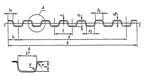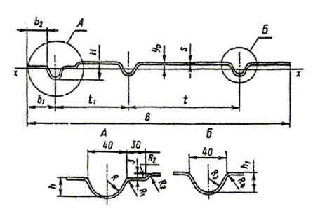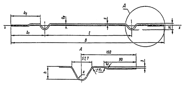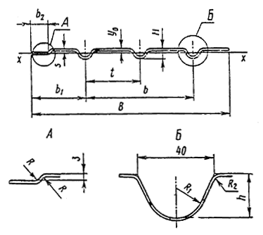 гофров, размеры, справочные величины и масса 1 м профиля должны соответствовать