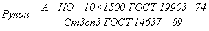 Рулон повышенной точности (А), с необрезанной кромкой (НО), размерами 10´1500 мм по ГОСТ 19903 из стали марки Ст3пс, категории 3 по ГОСТ 14637: