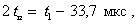 где t1 - суммарное время между зондирующим импульсом и эхо-сигналом от вогнутой цилиндрической поверхности в стандартном образце СО-3 при установке преобразователя в положение, соответствующее максимальной амплитуде эхо-сигнала; 33,7 мкс - время распространения ультразвуковых колебаний в стандартном образце, рассчитанное для параметров: радиус образца - 55 мм, скорость распространения поперечной волны в материале образца - 3,26 мм/мкс.