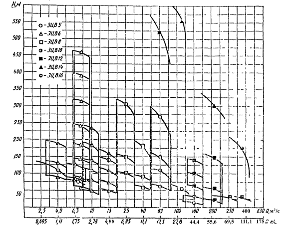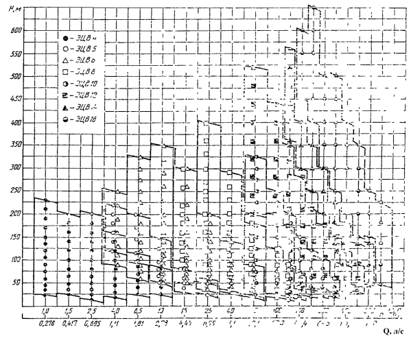 указанных в табл. 1 и 2, в поле Q (подача) - Н (напор) должно