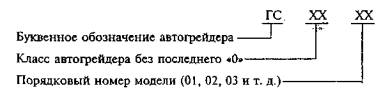 (Измененная редакция. Изм. № 1) 2.3. В Технических условиях па автогрейдеры конкретных моделей устанавливают значения показателей качества, номенклатуру которых устанавливают по согласованию с потребителем с учетом нижеприведенного перечня: эксплуатационная мощность двигателя по ГОСТ 18509; эксплуатационная масса по ГОСТ 27922; длина отвала; высота отвала; максимальные скорости движения на передачах; удельный расход топлива двигателя; расход масла в двигателе и трансмиссии автогрейдера; достигаемые параметры точности планирования; удельное давление на грунт. дымность отработавших газов двигателя автогрейдера в соответствии с ГОСТ 17.2.2.02 или ГОСТ 24028 (принимается по документации на двигатель);* уровень вибрации сиденья оператора по ГOCT 12.1.012;* выбросы вредных веществ с отработавшими газами из системы выпуска двигателя автогрейдера в соответствии с ГОСТ 17.2.2.05 или ГОСТ 24585 (принимают по документации на двигатель);* уровень звука на рабочем месте оператора по ГОСТ 12.1.003;* средняя оперативная трудоемкость ежесменного технического обслуживания; удельная суммарная оперативная трудоемкость плановых технических обслуживаний; 80%-ный ресурс до первого капитального ремонта и критерии предельного состояния; средняя наработка на откат. ___________ *Показатели обязательно включают в технические условия. 2.4. Порядок индексации конкретных моделей автогрейдеров (проектируемых после 01.01.97) приведен на схеме: