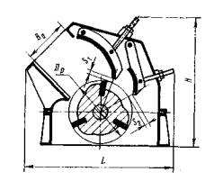 Постановлением Комитета стандартов, мер и измерительных приборов при Совете Министров СССР от 16 октября 1970 г. № 1474 срок введения установлен с 01.01.71 Проверен в 1984 г. Постановлением Госстандарта от 19.12.84 № 4701 срок действия продлен до 01.01.90 * Переиздание (март 1986 г.) с Изменениями № 1, 2, утвержденными в апреле 1981 г., декабре 1984 г. (ИУС 6-81, 4-85). Настоящий стандарт распространяется на однороторные дробилки, предназначенные для крупного дробления известняка, доломита, мергеля, гипса, руд малой абразивности и других подобных материалов. Стандарт не распространяется на дробилки для дробления пластичных материалов, склонных к налипанию. Установленные настоящим стандартом показатели технического уровня дробилок соответствуют требованиям высшей и первой категорий качества. (Измененная редакция, Изм. № 2). 1. ОСНОВНЫЕ ПАРАМЕТРЫ И РАЗМЕРЫ1.1. Основные параметры и размеры дробилок должны соответствовать указанным на чертеже и в табл. 1.
