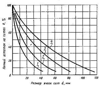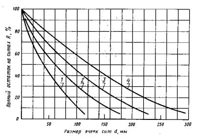 Типовые кривые зернового состава продукта дробления