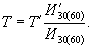 Срок службы бил Т в часах при дроблении материалов с показателем абразивности И30(60) определяют (если известен срок службы Т' при дроблении материала с показателем абразивности И'30(60)) на подобной дробилке, в том же режиме дробления и одинаковых по конструкции и материале билах по формуле