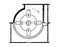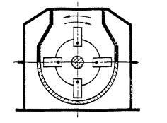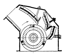 Дробилка, дробление в которой осуществляется ударами бил, жестко закрепленных на вращающемся вокруг горизонтальной оси роторе.