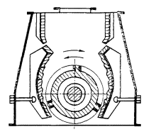 Дробилка, дробление в которой осуществляется сжатием материала между конусами, расположенными один внутри другого