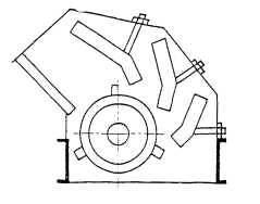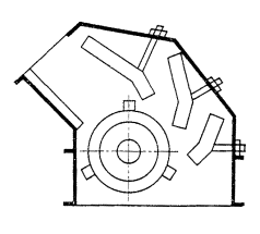 Дробилка, дробление в которой осуществляется ударами молотков, шарнирно закрепленных на вращающемся роторе.