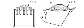 Значения, приведенные в табл. 2 для оборудования прямого копания, допускается распространять для ковшей грейфера и драглайна. 1.6. Если номинальная вместимость ковша, полученная расчетным путем, меньше входящей в данный ряд более чем на 2 %, то следует указывать ближайшую меньшую номинальную вместимость. 2. ЭКСПЕРИМЕНТАЛЬНЫЙ МЕТОД2.1. При экспериментальном методе определения вместимости ковши следует располагать в соответствии с черт. 1 - 6. 2.2. Ковши следует заполнять сыпучим материалом в объеме, указанном в пп. 1.2 и 1.3. 2.3. Объем сыпучего материала в ковше определяют заполнением мерного ящика. Материал в ковше и ящике не должен уплотняться. 2.4. Отклонение результатов измерений вместимости ковша экспериментальным методом от вместимости, указанной в формуляре (паспорте) экскаватора, - в пределах ±5 %. ПРИЛОЖЕНИЕ