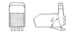 где С - высота “шапки”, м. 1.3.2.3. Ковши с выступающей задней стенкой (см. черт. 11) Задняя стенка такого ковша должна выступать за поперечную линию, соединяющую задние углы боковых стенок, а режущая кромка не должна выступать за поперечную линию, соединяющую передние углы боковых стенок. Разделительная плоскость должна проходить в задней части ковша через прямую, идущую вдоль верхнего края выступающей задней стенки, а в передней части - через прямую, идущую вдоль режущей кромки.