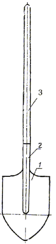 Срок действия с 01.01.89 до 01.01.94 Несоблюдение стандарта преследуется по закону Настоящий стандарт распространяется на лопаты, предназначенные для производства строительных, садово-огородных и погрузочно-разгрузочных работ. 1. КЛАССИФИКАЦИЯ, ТИПЫ И ОСНОВНЫЕ РАЗМЕРЫ1.1. Лопаты по виду подразделяют на: строительные; садово-огородные; погрузочно-разгрузочные. 1.2. Лопаты (черт. 1) в зависимости от назначения изготовляют следующих типов, указанных в табл. 1. Обозначение элементов лопат 1 - полотно; 2 - тулейка; 3 - черенок Черт. 1 Таблица 1