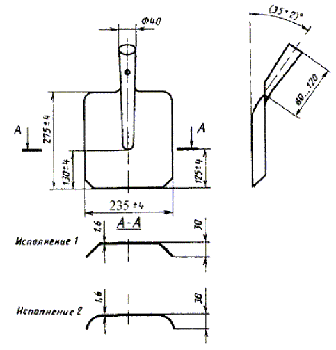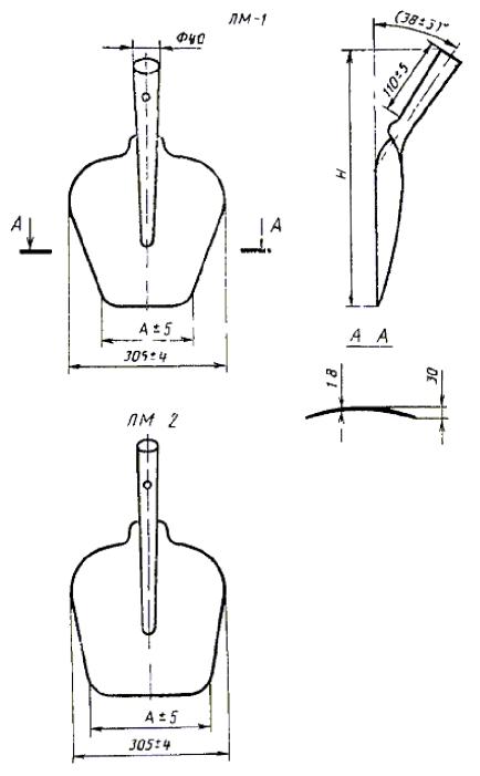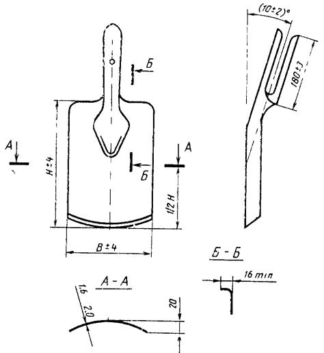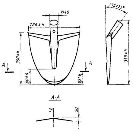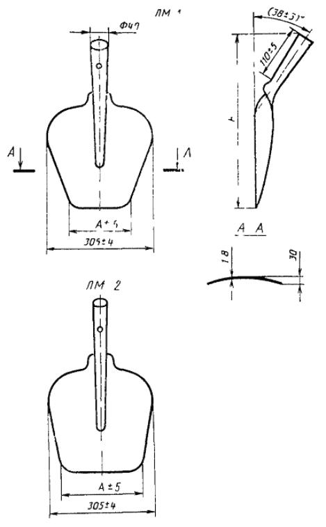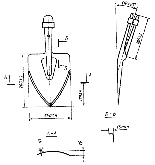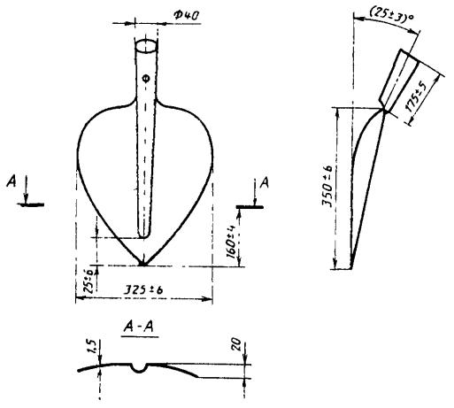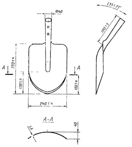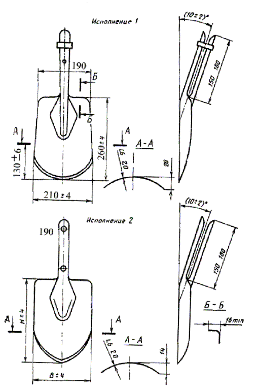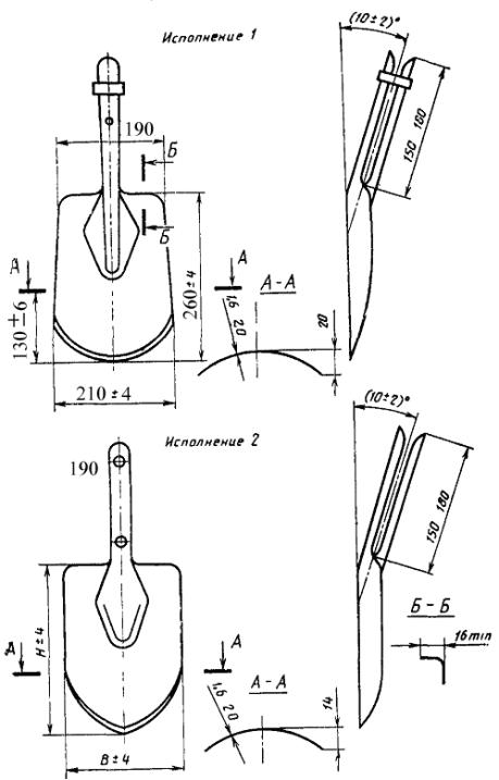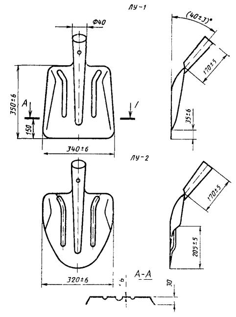 1.3. По конструкции полотна лопаты изготовляют: цельноштампованные; сборные (с накладной тулейкой). 1.4. Основные размеры лопат (без черенков) и их предельные отклонения должны соответствовать указанным на черт. 2 - 16. Неуказанные