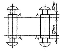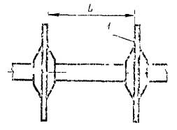 Черт. 6 Допуск ±1,2 мм. (Измененная редакция, Изм. № 1). Метод проверки На пильном валу устанавливают контрольные диски 1. На станке последовательно задают различные размеры ширины досок. Измеряют расстояние L между контрольными дисками, которое должно соответствовать заданной ширине доски с учетом припуска по ГОСТ 6782.2-75. Отклонение определяют как разность между заданным и полученным размерами. Проверка 1.7. Параллельность нижних подающих вальцов одной группы между собой