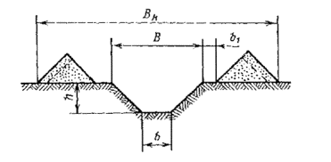 где b - ширина канала по дну, м; В - ширина канала по верху, м; H - глубина канала, м. (Измененная редакция, Изм. № 1, 2). 2.4.10.6; 2.4.10.7. (Исключены, Изм. № 2). 2.4.10.8. Удельный расход топлива qт в килограммах на метр в кубе следует определять по формуле
